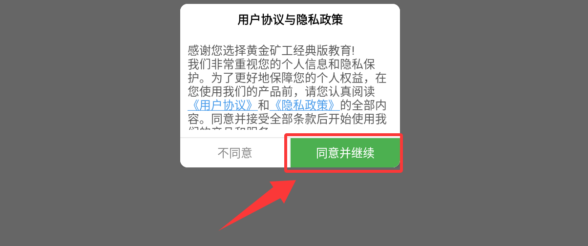 1、點(diǎn)擊用戶協(xié)議與隱私政策里的同意并進(jìn)入。