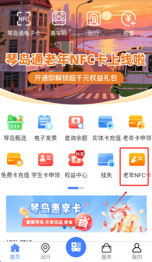 3、綁定老年人專屬NFC交通卡至手機應用。通過近場通訊技術(shù)實現(xiàn)接觸式刷卡乘車的便捷服務。