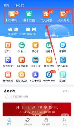 打開后首先見到的是掃碼乘車、生活繳費等功能;