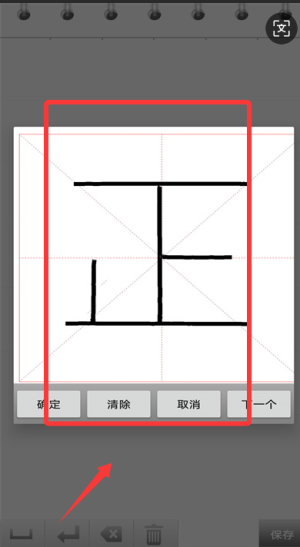 2、進入練習界面后,跟著屏幕上的范字一筆一畫描紅,寫完后app會智能評分,幫你糾正筆畫問題。