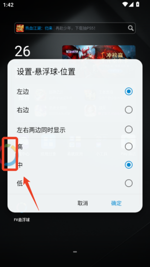 拖動(dòng)懸浮球到合適位置,等待紅十字光標(biāo)變黃。