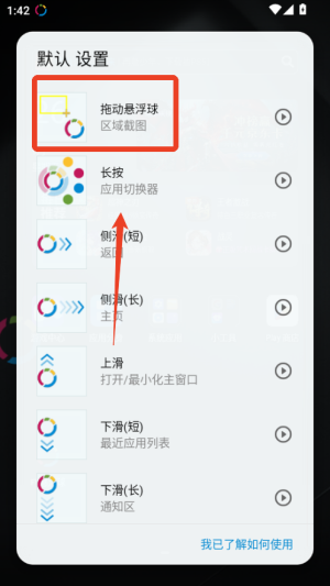 2、長按屏幕上的懸浮球可進(jìn)行自定義編輯,比如設(shè)置滑動(dòng)、點(diǎn)擊等手勢來觸發(fā)不同操作。