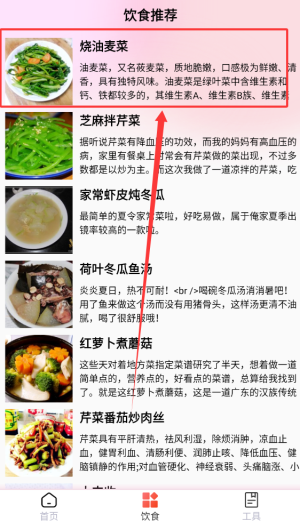 2、飲食模塊根據(jù)個(gè)人健康數(shù)據(jù)提供個(gè)性化膳食建議與營(yíng)養(yǎng)搭配方案推薦。
