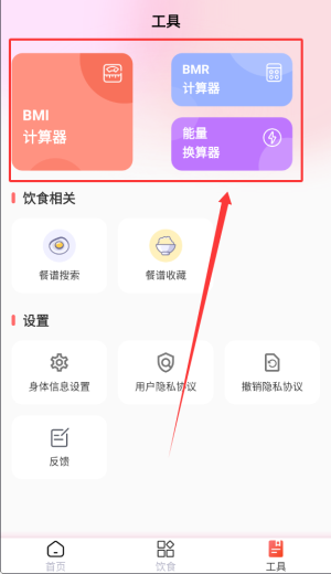 3、工具區(qū)配備多項(xiàng)實(shí)用計(jì)算功能,包括身體質(zhì)量指數(shù)與基礎(chǔ)代謝率等專(zhuān)業(yè)測(cè)算。