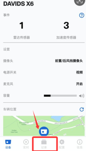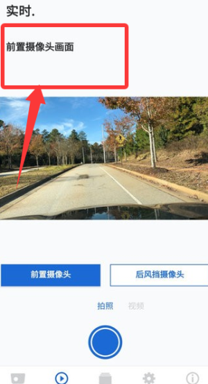 2、行駛過程中記錄如需抓拍畫面,可點擊軟件界面的一鍵拍照功能,照片會自動保存到相冊。