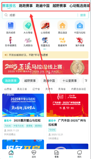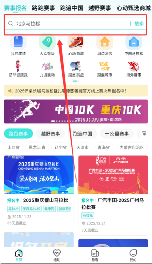 1、通過首頁搜索欄可快速查找感興趣的賽事活動(dòng)或相關(guān)運(yùn)動(dòng)資訊內(nèi)容。