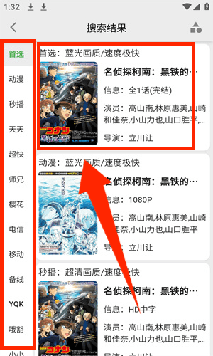 3、搜索結(jié)果頁提供多條播放線路,可選擇首選線路直接觀看。