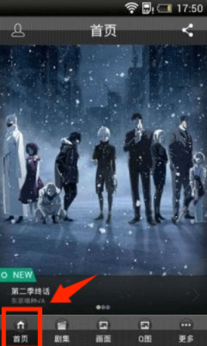 1、進(jìn)入應(yīng)用首頁(yè),可瀏覽"東京喰種"相關(guān)內(nèi)容或切換至劇集頁(yè)面。
