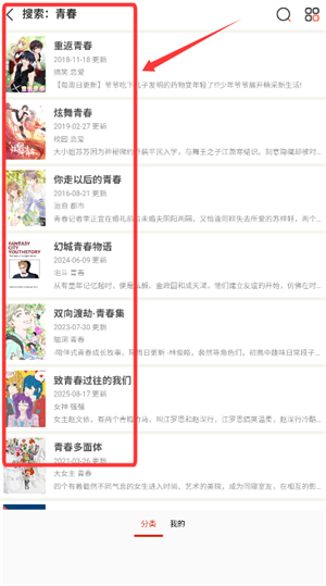2、在展示的結(jié)果列表中,選擇心儀的漫畫并進(jìn)入詳情頁。