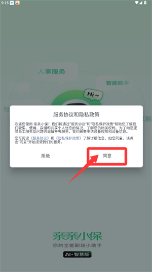 1、啟動應用后請閱讀服務協(xié)議與隱私政策,確認無誤后點擊同意。