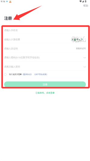 2、在注冊頁面依次填寫手機號、算術結果及驗證碼,設置登錄密碼完成注冊。