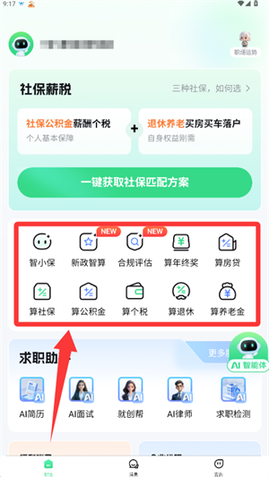3、成功登錄后在首頁可見智小保與算公積金等功能,選擇算公積金進入。